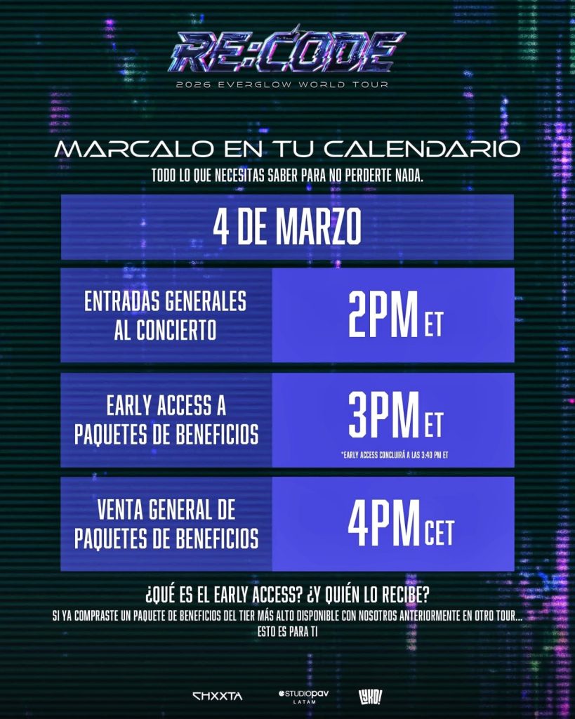 El grupo surcoreano EVERGLOW anunció oficialmente su esperado regreso a México y Latinoamérica como parte de su gira internacional 2026 EVERGLOW WORLD TOUR [RE:CODE], una serie de conciertos que también incluirá fechas en Europa.