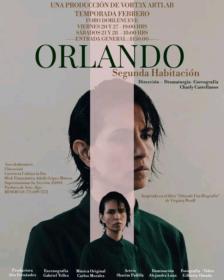Orlando – Segunda Habitación, es dirigida por Charly Castellanos y forma parte de la trilogía escénica que el creador ha desarrollado en torno a la obra y pensamiento de Virginia Woolf, iniciada en 2021 con Virginia, inspirada en Una habitación propia.