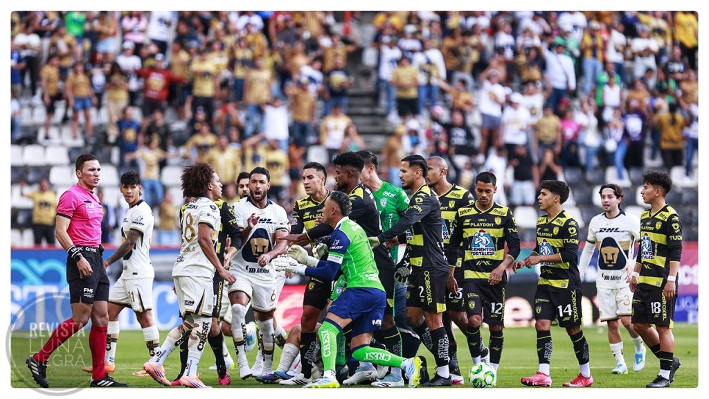 Desde el silbatazo inicial, el conjunto universitario mostró una cara agresiva. Casi al inicio, el defensa Tuzo, Brian Garcia, se hizo expulsar después de dar una patada a Rodrigo López lo que dejó a los locales con 10 hombres en el campo.