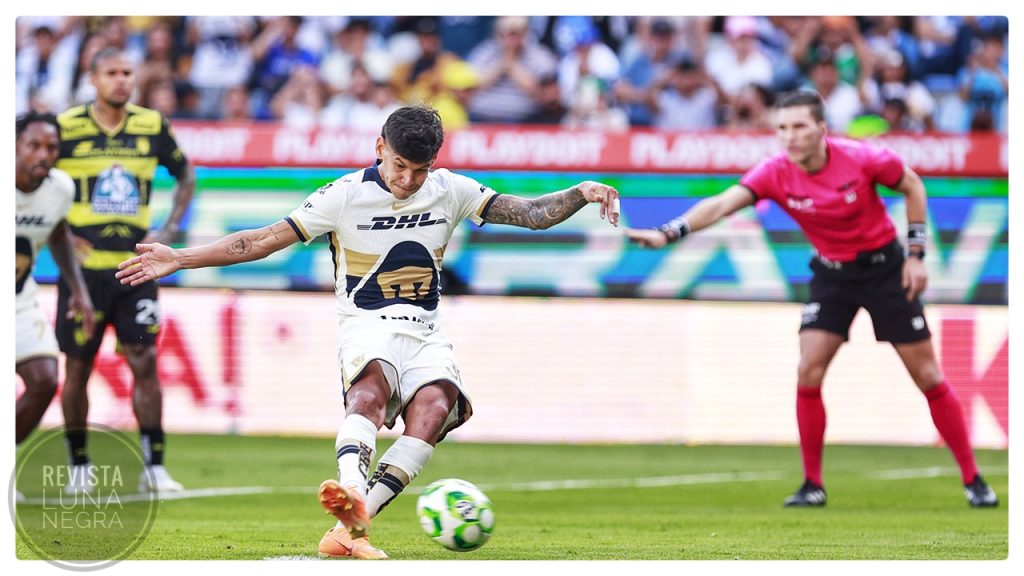 Antes de terminar el primer lapso, se marcó un penalti a favor de la UNAM después de la falta que cometió Víctor Guzmán dentro del área local. Robert Morales cobró la falta para marcar el segundo gol de los locales.